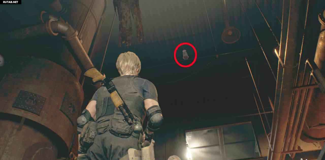 После того, как Эшли использовала разрушающий шар, чтобы разбить стену, пройдите через треснувшую стену и сразу же поверните налево, чтобы найти его на коробке. Вы должны победить сильного врага в лаборатории инкубации, это будет отмечено на карте. Это была область ранее в главе 13, мы вернемся туда сейчас, прежде чем продолжить историю. Смотрите расположение внизу врага. Купите Ракетницу за 50 000 у Торговца, она убьет этого врага с 1 удара.