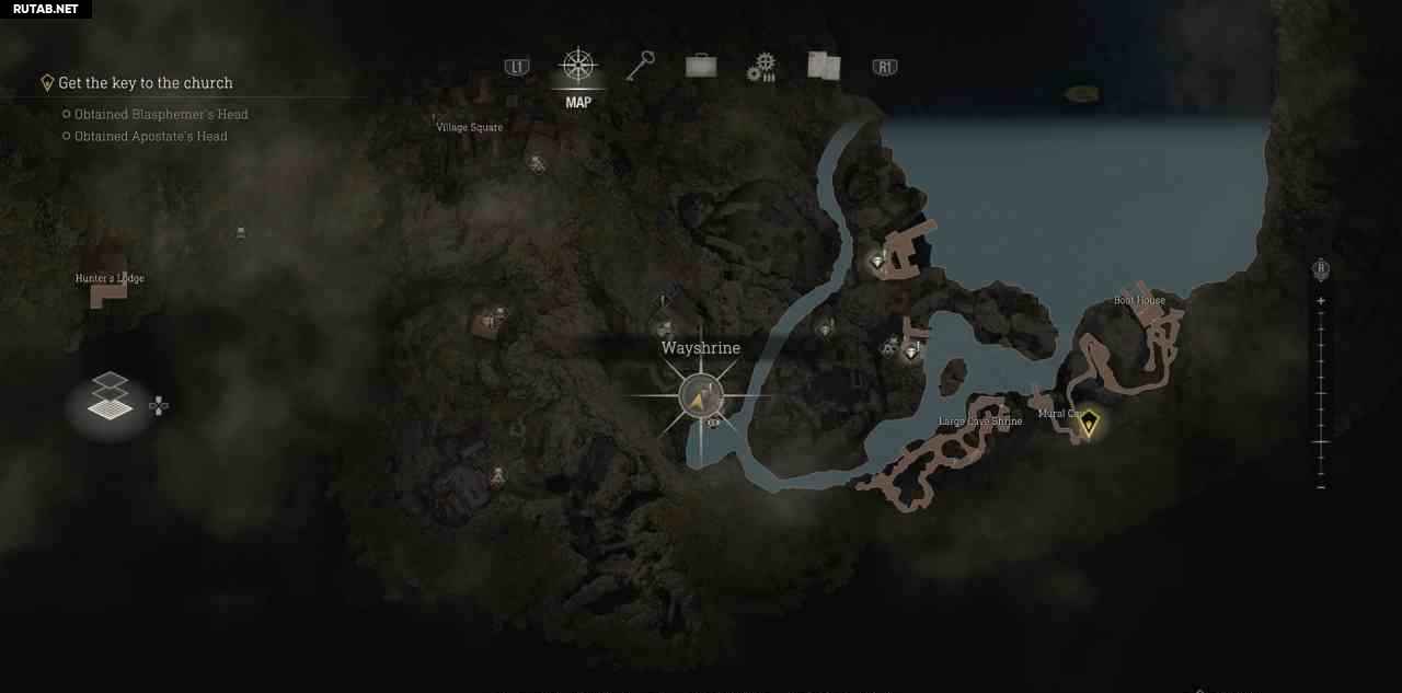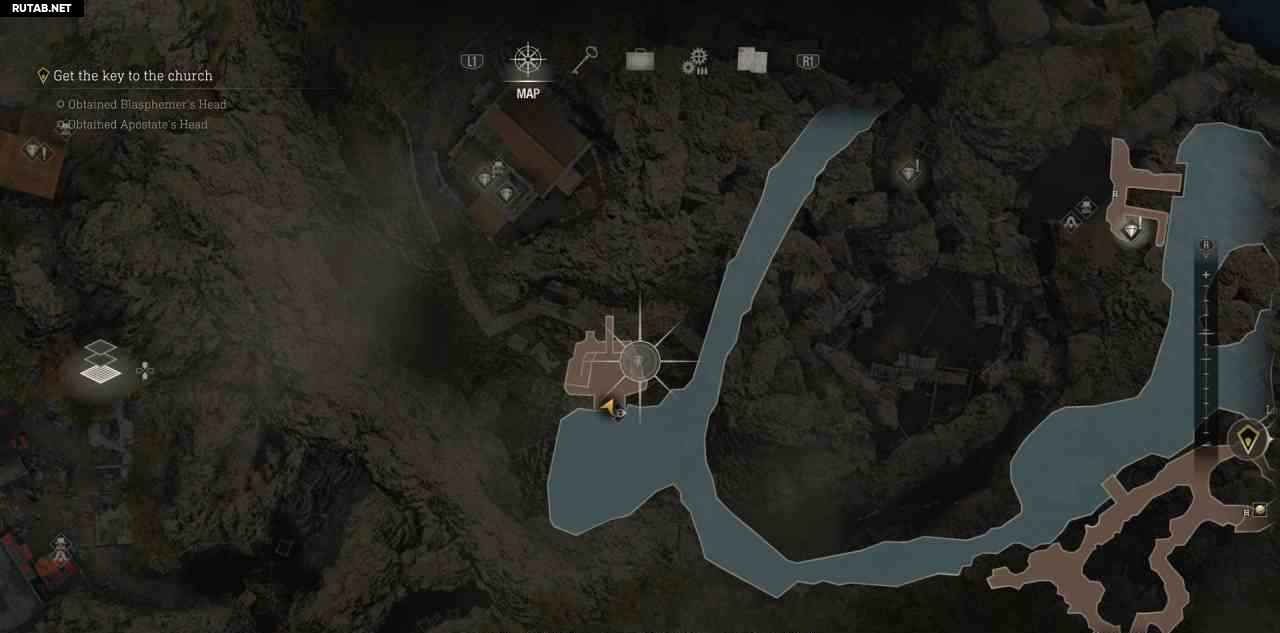 Возвращайтесь в Пещеру Фрески, где глава началась. Поместите обе головы на пьедесталы (Голова Богохульника слева, Голова Отступника справа). Вам придется вернуться к церкви из главы 3 и вставить знак отличия на церковные ворота.
