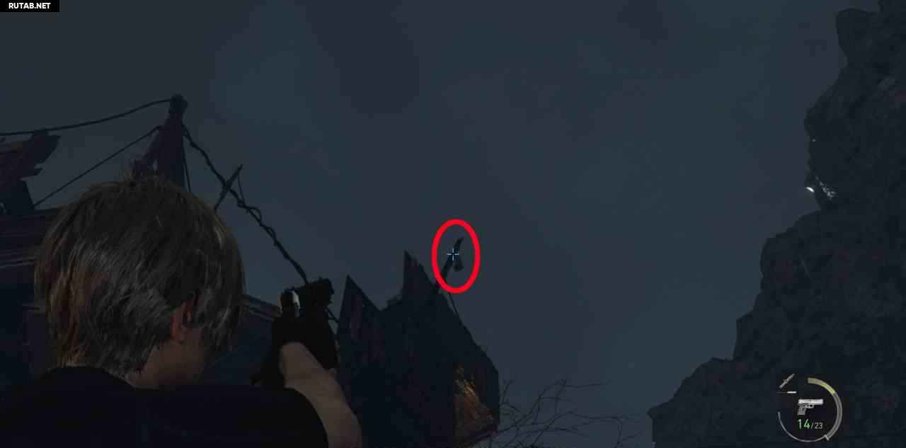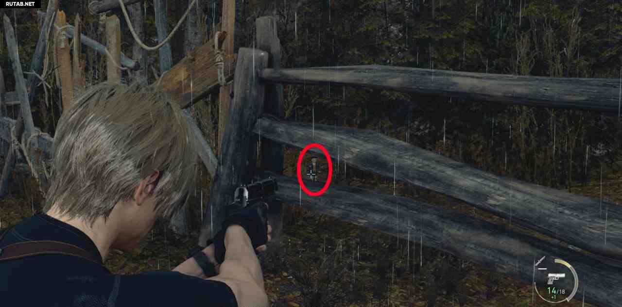 Из предыдущей локации развернитесь, пройдите через другие ворота, чтобы войти в дом, а затем поднимитесь по лестнице в область Лесного алтаря. В этой области вы можете выстрелить в кастеляна через забор.