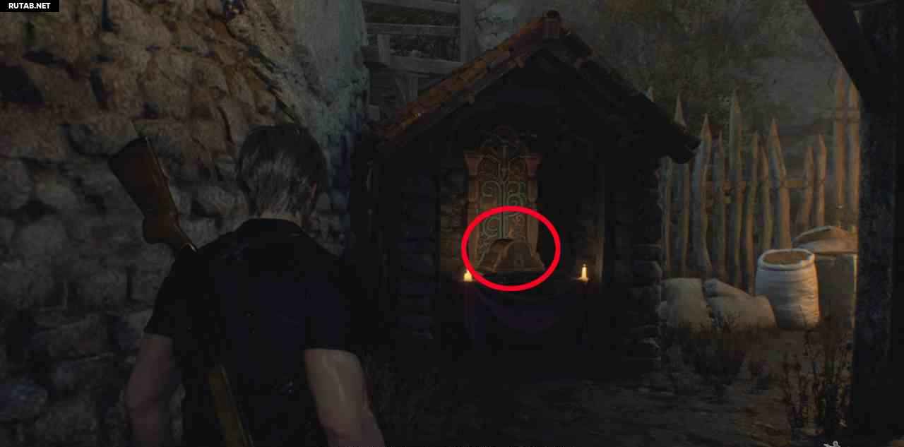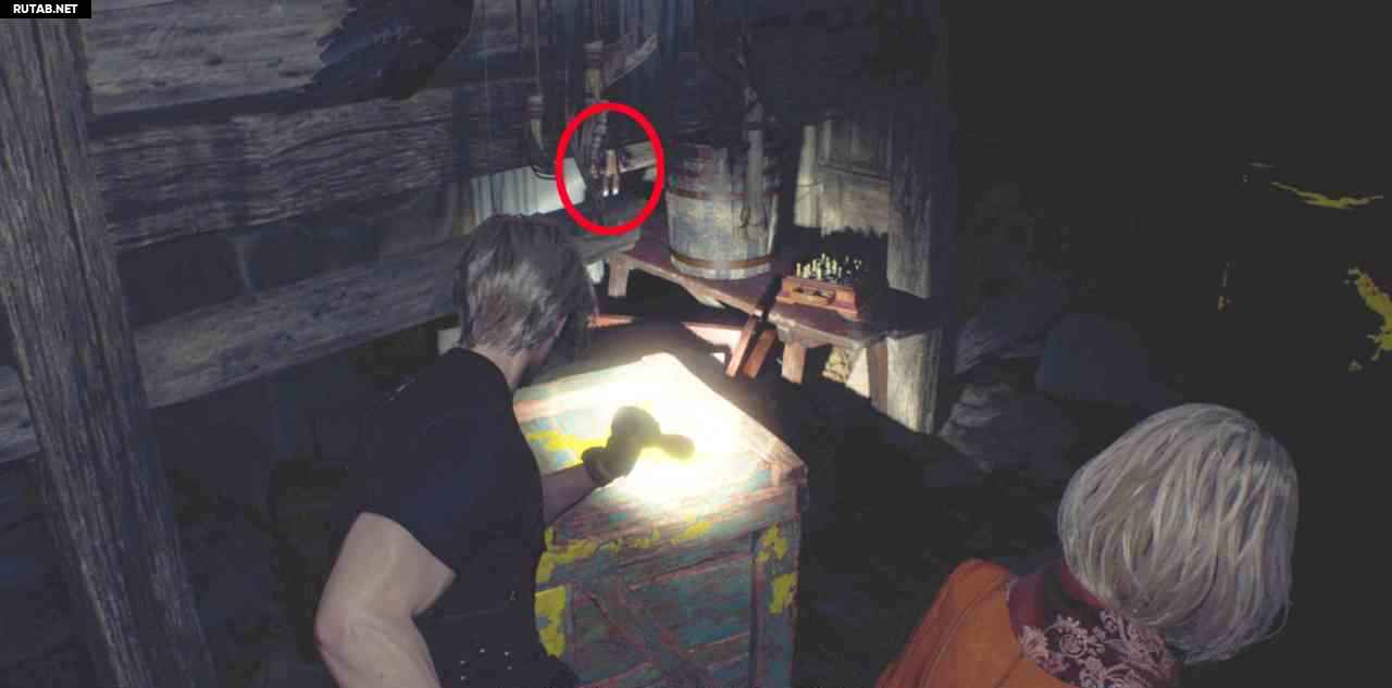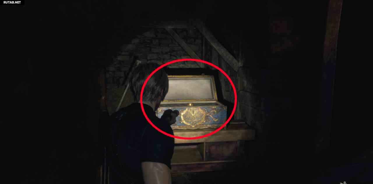 . На деревенской площади после победы над врагами идите к последнему дому и взаимодействуйте с желтым выступом сбоку, чтобы поднять Эшли. Она откроет дверь, после чего вы сможете найти внутри синий сундук.