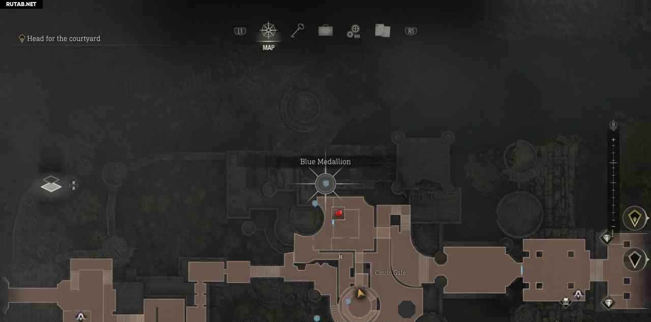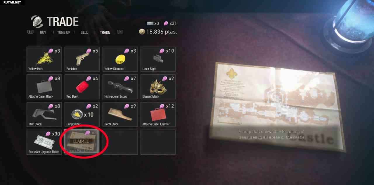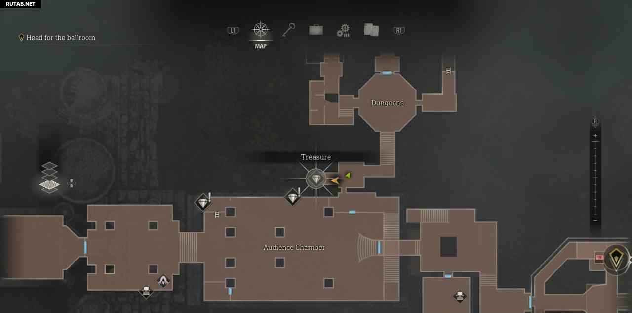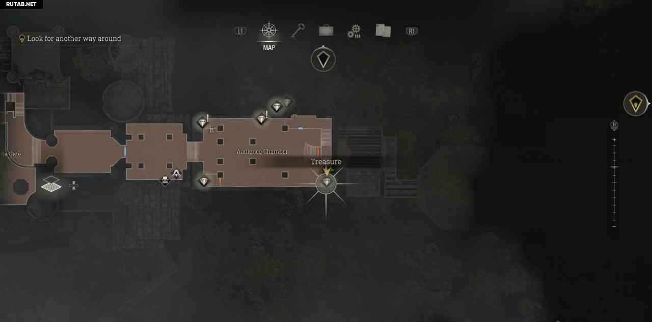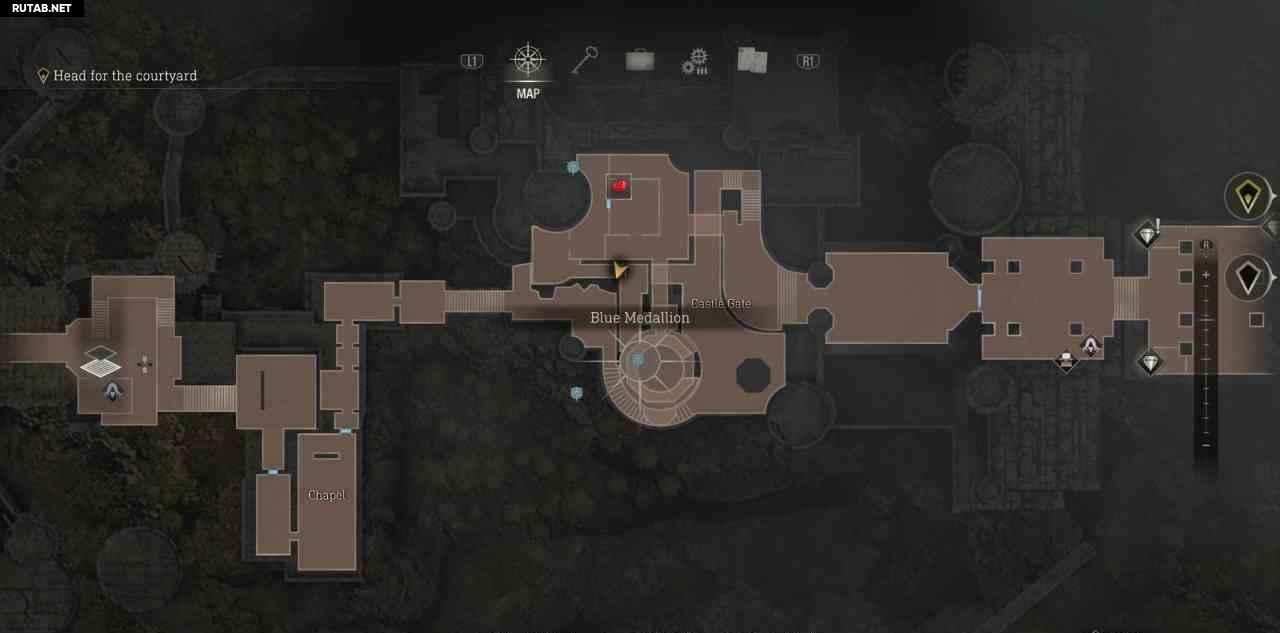 В самом начале замка войдите в первую дверь справа, чтобы найти торговца. Купите у него карту сокровищ замка, она помечает все сокровища на карте и добавляет счетчик прогресса в правом нижнем углу карты.