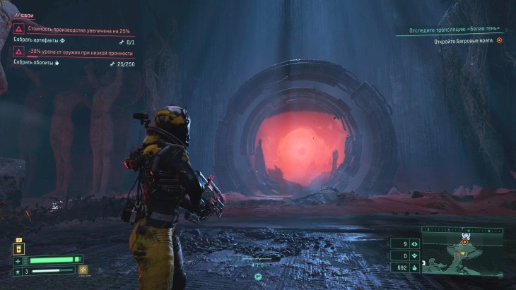 Главные врата, как следует из названия, ведут по сюжету. То есть вы либо попадает к боссу (главные врата будут красными), либо к порталу в следующий биом. Боковые врата – это дополнительные локации, которые можно исследовать. Контейнеры обычно содержат оружие. "Открытый" означает, что ключ не нужен. Для закрытых нужен ключ. Транслокатор телепортирует к другому транслокатору. Фабрикатор позволяет создавать предметы за оболит. Гелиос – ваш разбившийся корабль. Реконструктор – это специальное устройство, в котором вы можете сохраниться, чтобы в случае смерти не начинать все сначала. Активируется за эфир и работает только в пределах своего биома. Устройством обычно обозначаются инопланетные фабрикаторы, в которых можно создать случайный предмет за оболит. Сигнал скафандра – это один из аудиодневников Селены. Инопланетный символ позволяет расшифровать записи древней расы, если у вас достаточно найденных шифров. Инопланетный архив содержит голограммы, которые объясняют историю древней расы. Дом – место в видениями Селены. Врата – ведут в следующий биом после убийства босса. Сдерживающие врата – за этими вратами обычно ждет сложный бой с волнами мобов.