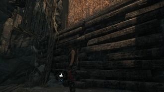 Пройдите внутрь и следуйте по коридору, сжимая между камнями. Немного впереди вас ждет прогулка в лагерь (Лара комментирует архитектуру, по пути вы пройдете мимо реликвии, и также можете спрыгнуть вниз, прежде чем войти в проход и проверить аварийный тайник рядом с колодцем). В лагере также есть документ. Пройдите во двор через проход напротив костра.