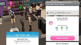 В The Sims Mobile большинство не-событийных взаимодействий не дают никаких очков или не забирают энергию. Тем не менее, есть несколько, которые выделяются. Они происходят на вечеринках. В зависимости от деятельности, они обеспечивают от 1 до 5 очков опыта. Однако у них очень длительное время восстановления.