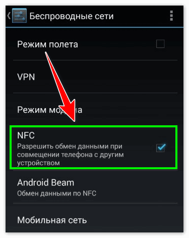- Для устройств Android, также строго необходимо включить режим «Android Beam» также в разделе «беспроводных сетей».