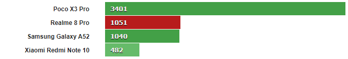 То же самое касается графической мощности - Realme 8 Pro так же хорош, как 7 Pro и недавний Redmi Note 10 Pro, но не может сравниться с недавним Poco.