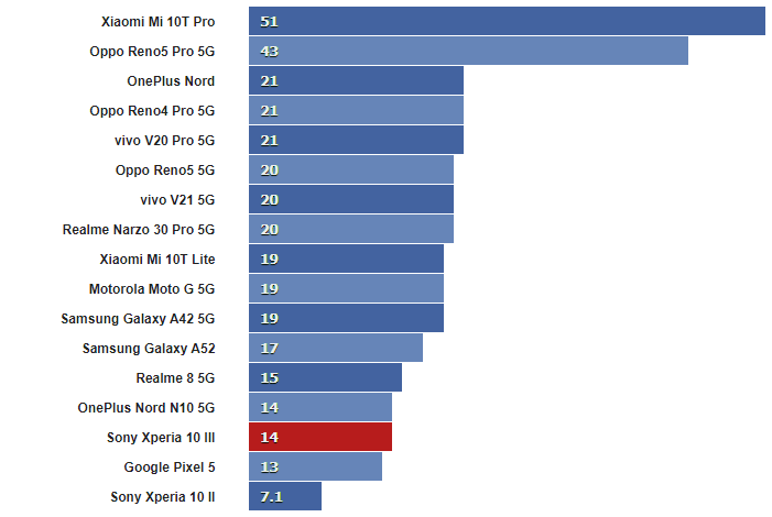 Xperia 10 III продолжает идти по стопам своего предшественника, когда дело доходит до чистой производительности – в том смысле, что он, как правило, не может сравниться со своими конкурентами (как и предшественник). Нельзя сказать, что этот смартфон слабый – он может побороться с другими ЦП, но гораздо лучшие графические процессоры можно приобрести примерно по той же запрашиваемой цене (конечно, с неизбежными уступками в других областях).