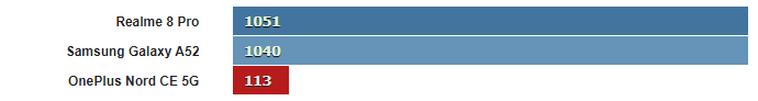 Realme 8 Pro, возможно, является одним из лучших телефонов стоимостью около 20 000 рублей. И хотя частота обновления дисплея составляет всего 60 Гц, он по-прежнему большой, яркий и четкий. Realme 8 Pro также использует Snapdragon 720G, как и Galaxy A52. Отдел камеры является основной причиной выбора данного телефона – с его более продвинутым основным сенсором и (якобы) 3-кратным зумом без потерь. Быстрая зарядка 50 Вт – еще один аспект, который стоит принять во внимание, в то время как поддержка карты microSD + комбинация базового хранилища 128 ГБ – есть очень хорошо. И все же более мощный чипсет Nord CE, дисплей HRR, надежное программное обеспечение и длительное время автономной работы действительно сложно превзойти.