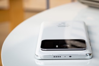 В черном окне, занимающем практически всю ширину телефона, расположены три камеры – две из них с (большой) обычной оптикой и перископ для телеобъектива. Есть также лазерная автофокусировка, тройная светодиодная вспышка и, что наиболее важно, небольшой вспомогательный дисплей.