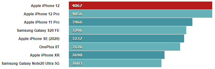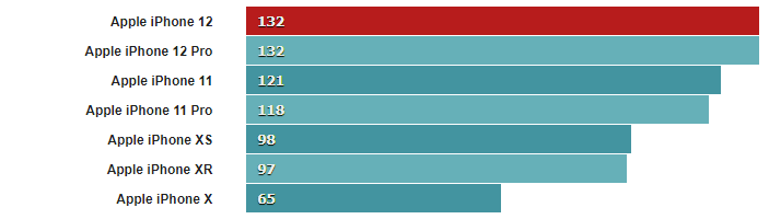 Интересно, что и iPhone 11, и iPhone 12 имеют одинаковую производительность в режиме ожидания.