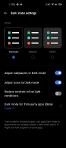 Также доступен темный режим, и он был улучшен с помощью Realme UI 2.0 с поддержкой трех разных темных стилей – черного, темно-серого или светло-серого. Настройка темного стиля может быть ручной или запланированной по времени. Вы также можете принудительно использовать темный режим в сторонних приложениях, хотя это не всегда заканчивается хорошо.