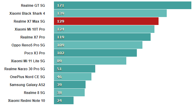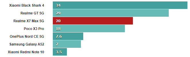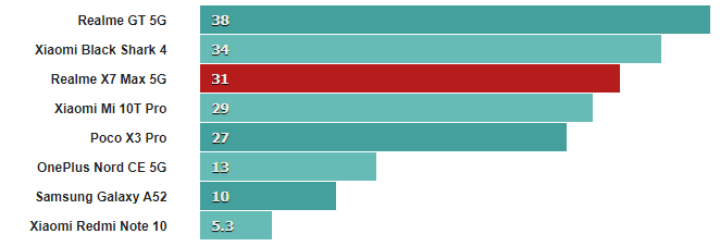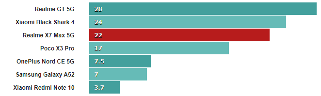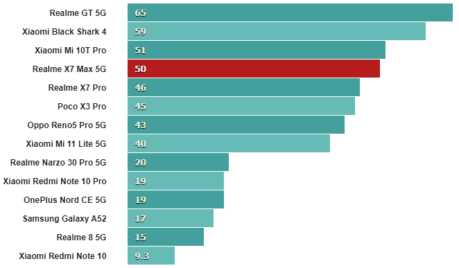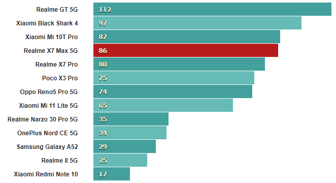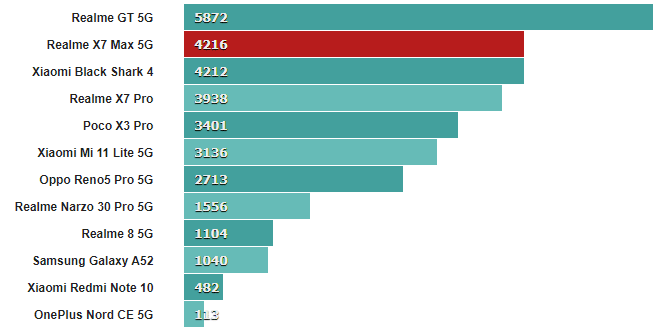 Оба эти числа немного ниже, чем у нашего устройства Realme GT, но достаточно близки, чтобы учесть нормальное отклонение от устройства к устройству.