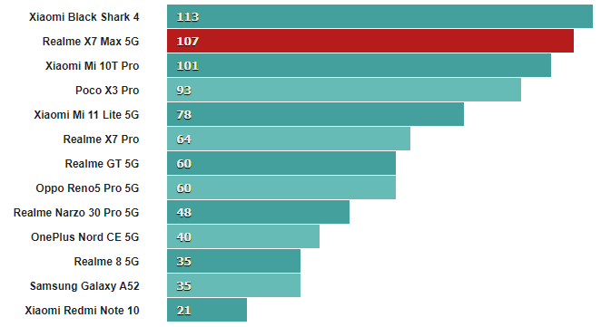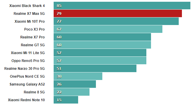 Учитывая все обстоятельства, Realme X7 Max 5G (GT Neo) и его чип MediaTek Dimensity 1200 нисколько не разочаровывают в отделе производительности. Несмотря на то, что Dimensity 1200 все еще не в состоянии полностью угнаться за Snapdragon 888, он, несомненно, является достойным процессором, который сочетает в себе первоклассные современные возможности подключения и набор функций с большой мощностью и хорошей эффективностью.
