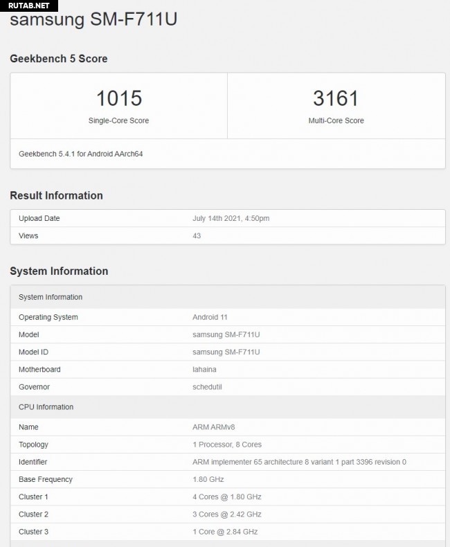 Характеристики Samsung Galaxy Z Flip3 раскрыты на Geekbench