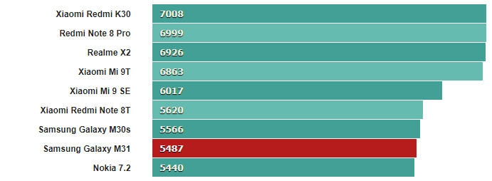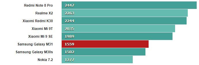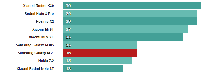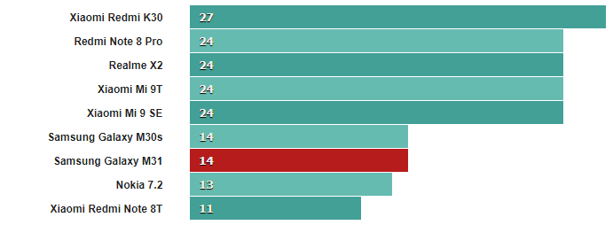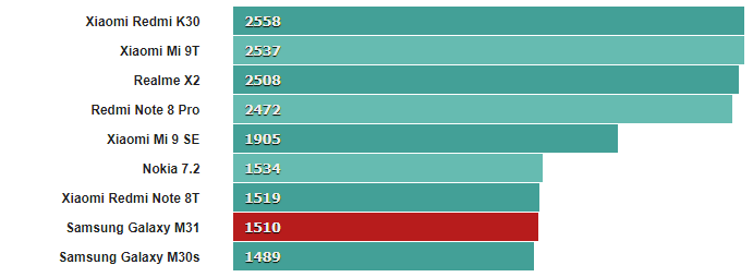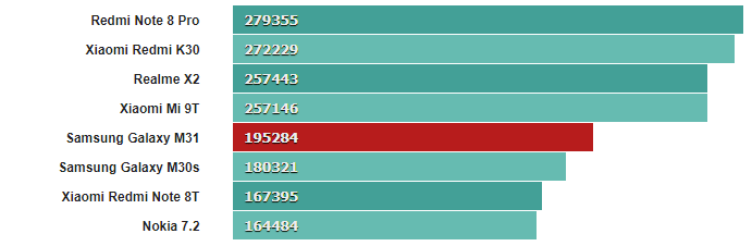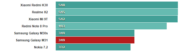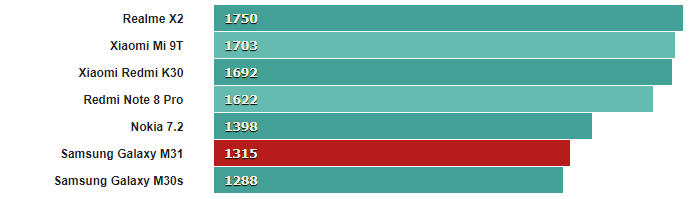 Производительность Galaxy M31 достойная. В большинстве случаев при прокрутке или переключении между приложениями телефон работает быстро и плавно. Иногда, однако, возникают некоторые заминки, и мы также заметили заикание анимации при открытии и закрытии приложений. Обычно это решается перезагрузкой телефона, но мы надеемся, что Samsung исправит все, что вызывает эту проблему. Пользовательский интерфейс также заметно тормозит, когда батарея разряжается, поскольку телефон автоматически переключается в режим низкой производительности. Помимо этого, телефон также занимает довольно много времени для установки приложений после их загрузки, и производительность при использовании фильтров AR в таких приложениях, как Instagram и Snapchat, тоже невысока.