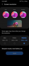 ↑В этом году Samsung наконец-то удалось догнать конкурентов и позволить вам включить как частоту обновления 120 Гц, так и максимальное разрешение экрана QHD+. Поскольку это панель LTPO, она может динамически установить частоту обновления на уровне 1 Гц, чтобы сэкономить заряд батареи. Как это работает в реальности, мы подробно расскажем в разделе о батарее, но пока давайте просто скажем, что LTPO кажется явно переоцененным.