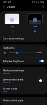 В отличие от почти любой другой части One UI, меню настроек режима экрана было упрощено за последние несколько лет, и мы ценим, что здесь больше нет беспорядка запутанных опций. И все же – как ни странно, нет настройки для автоматической настройки цветов в зависимости от окружающего освещения, но есть настройка «Адаптивная» для защиты глаз (название Samsung для фильтра синего света), которая, по-видимому, регулирует цвета в зависимости от времени дня.