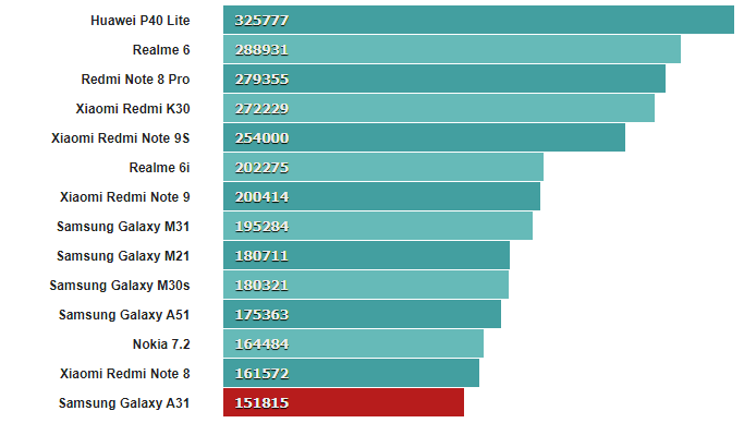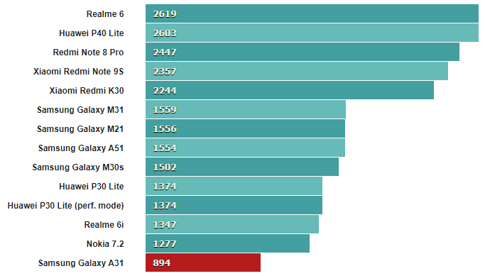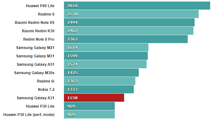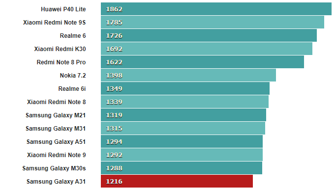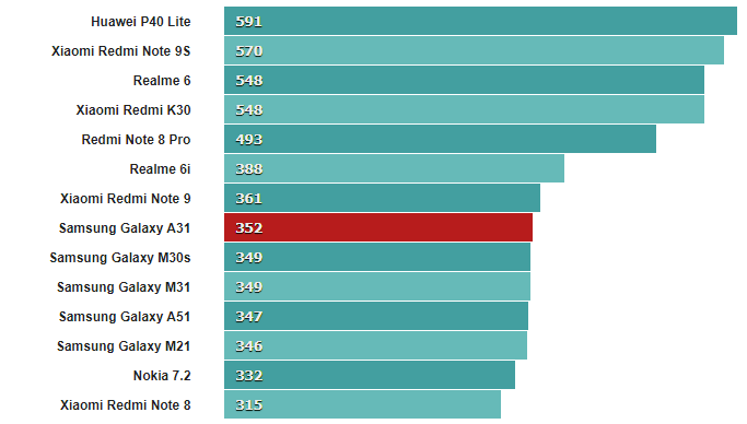 Помимо этой битвы один на один, мы можем ясно видеть, что семейства чипов MediaTek G80 и G90, а также линейка Snapdragon 700 и Kirin 810 среднего класса от Huawei – все это заметный шаг вперед по производительности. В то же время эти чипы можно найти в телефоне в той же ценовой категории, что и Galaxy A31.