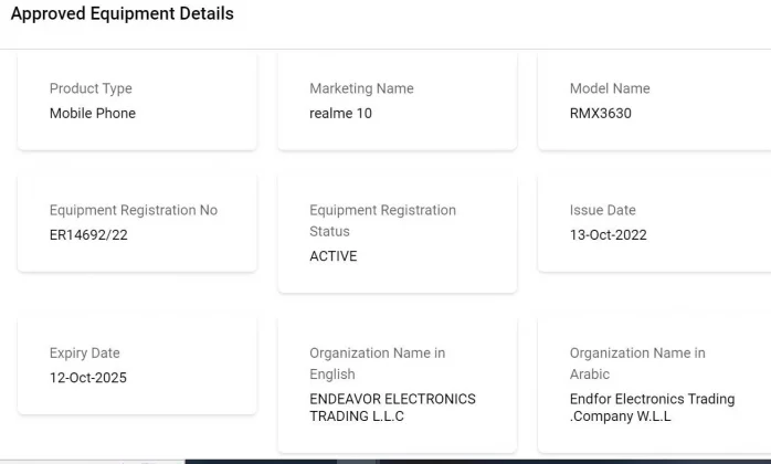 Номер модели Realme 10 (RMX3630) еще раз подтвержден листингом TDRA. Номер модели Realme 10 Pro Plus — RMX3686. В сертификационном листинге нет информации о спецификациях или дизайне, однако Realme недавно намекнула на предстоящий выпуск телефона на базе MediaTek Dimensity 1080, которым, по слухам, может быть Realme 10 Pro+.