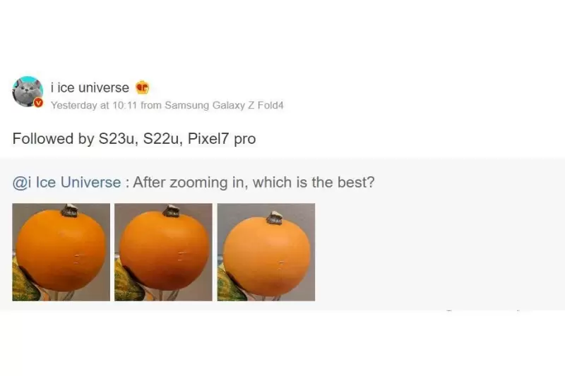 Новость поступила от известного информатора Ice Universe, который поделился образцами снимков с камеры на Weibo (китайский сайт микроблогов). Глядя на первоначальный пост в социальных сетях, мы видим, что автор поделился тремя увеличенными изображениями тыквы без раскрытия каких-либо других подробностей. Он также попросил пользователей Weibo проголосовать за лучшее изображение из трех, при этом S23 Ultra одержал победу. Позже Ice Universe сообщил, что фото были сделаны с S23 Ultra, S22 Ultra и Pixel 7 Pro.