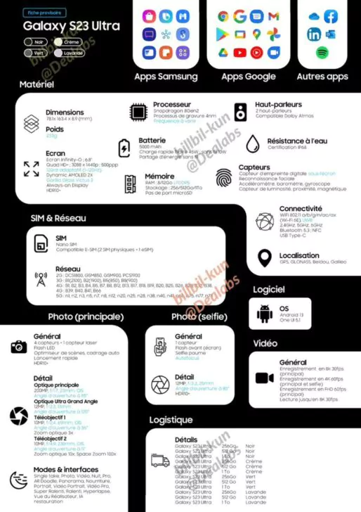 После утечки спецификаций двух младших вариантов Galaxy S23 у нас теперь есть просочившиеся характеристики флагмана Galaxy S23 Ultra, которые раскрыл Dohyun Kim.