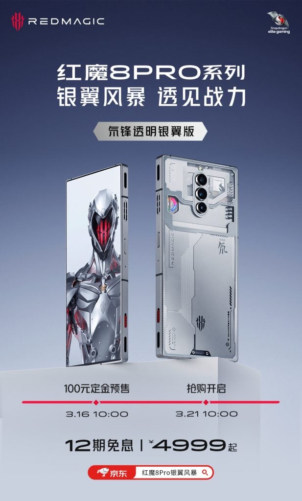 Red Magic 8 Pro Transparent Silver Edition предлагает те же аппаратные функции, что и стандартный вариант, однако новинка поставляется только в одном варианте на 12 ГБ. Цена смартфона составляет 4999 юаней (~ 55 210 руб.). Устройство уже доступно для предзаказа, а официальные продажи стартуют 21 марта. Покупатели, сделавшие предзаказ, получат дополнительную скидку в размере 100 юаней (~ 1 100 руб.).