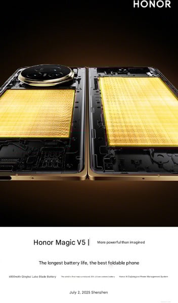 Компания Honor готовится представить свой новый складной смартфон Magic V5 на мероприятии 2 июля. Перед анонсом производитель подтвердил, что устройство получит аккумулятор ёмкостью 6100 мА·ч под названием «Qinghai Lake» с анодом на основе высококремниевого материала (25% кремния). По словам Honor, это первый случай использования такой технологии в массовом производстве.