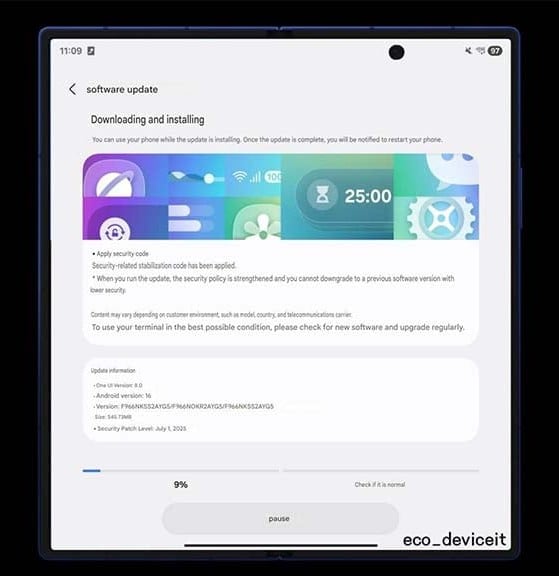 Первая прошивка под номером F966NKSS2AYG5 начала распространяться в Южной Корее на этой неделе. В отличие от обычных пост-релизных обновлений, это вышло до старта продаж и в основном содержит июльский патч безопасности 2025 года. По данным источников, он устраняет 40 известных уязвимостей, включая одну критическую проблему в Android, 21 уязвимость высокой степени риска и 17 исправлений, специфичных для Samsung (касаются Knox, Samsung Account и Bluetooth). Вскоре обновление ожидается и в других регионах, включая США, Канаду и Европу.