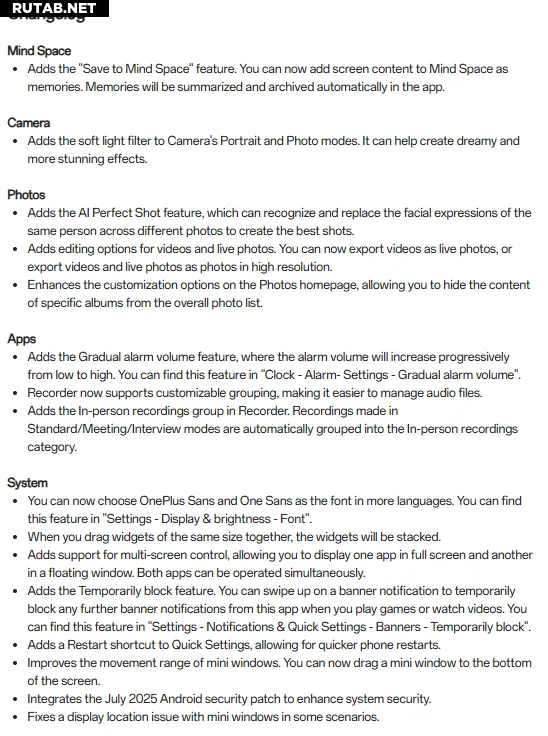 Что касается системных улучшений, OxygenOS 15 добавляет управление несколькими экранами для одновременного использования двух приложений, новую кнопку перезагрузки в быстрых настройках и поддержку складываемых виджетов. Также улучшена гибкость мини-окон для лучшего многозадачного режима, расширена поддержка шрифтов (включая OnePlus Sans) и обновлено приложение «Диктофон», которое теперь поддерживает группировку записей с автоматической разметкой для аудио в реальном времени. Новая функция постепенного увеличения громкости будильника помогает мягче просыпаться по утрам.