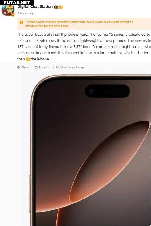 По данным инсайдера Digital Chat Station, Realme 15T получит 6,57-дюймовый плоский дисплей, широкие скругленные края и тонкий корпус, ориентированный на удобство использования одной рукой. Несмотря на тонкий профиль, устройство, вероятно, получит крупный аккумулятор, что сделает его заметным вариантом в своем сегменте.