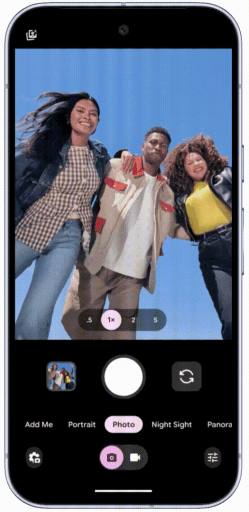 Guided Frame был улучшен с помощью ИИ Gemini для помощи людям с нарушениями зрения. Функция использует звуковые подсказки, вибрации и описания сцены, чтобы упростить самостоятельное создание фотографий.