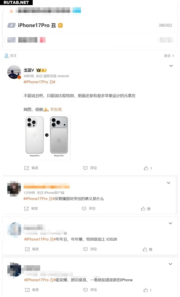 Тема «iPhone 17 Pro — некрасивый» взлетела в трендах китайского аналога Twitter, Weibo, вызвав активное обсуждение среди пользователей.