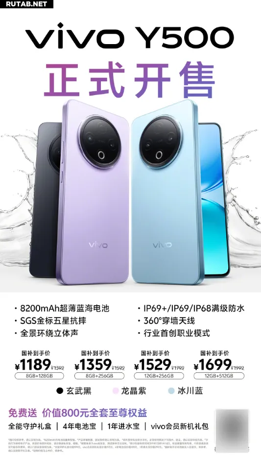 vivo Y500 с аккумулятором 8200 мАч и защитой IP69+ поступил в продажу