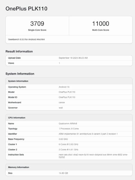 OnePlus 15 показал на Geekbench результаты, достойные флагмана 2025 года