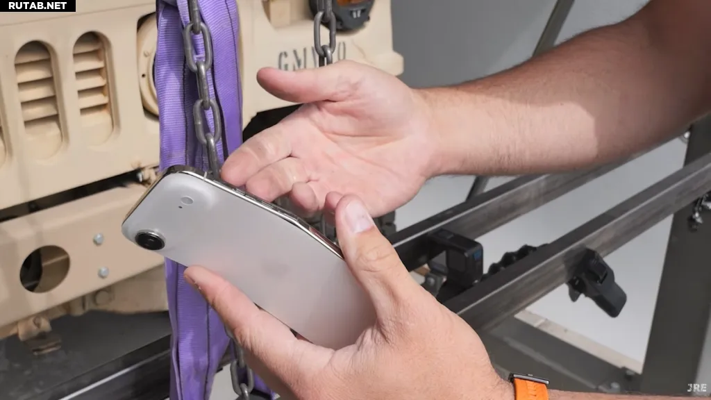 Конечно, Нельсон пошел дальше. Используя крановые весы, он приложил усилие до 216 фунтов (около 98 кг), что в конечном итоге привело к трещине на переднем стекле и необратимому изгибу рамы. Даже тогда заднее стекло не разбилось, и телефон оставался работоспособным.