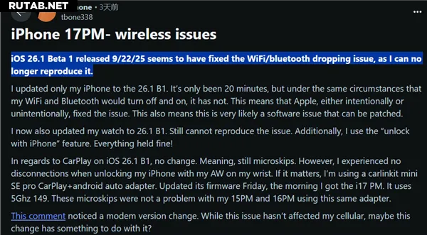 По предварительным отзывам, после установки бета-версии iOS 26.1, выпущенной сегодня, отключения Wi-Fi прекратились.