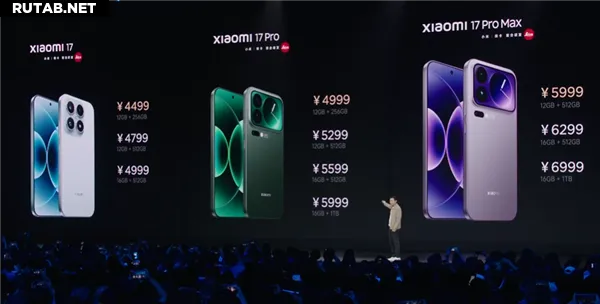 Xiaomi 17 Pro Max: 12+512 ГБ — 5999 юаней; 16+512 ГБ — 6299 юаней; 16 ГБ+1 ТБ — 6999 юаней.