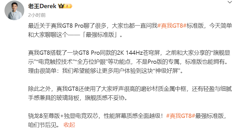 По словам вице-президента Realme, Realme GT8 получит тот же 2K-экран с частотой 144 Гц, что и Pro-версия, матовую металлическую рамку, стеклянную заднюю панель, а также флагманский процессор Snapdragon 8 Supreme Edition вместе с отдельным игровым чипом.