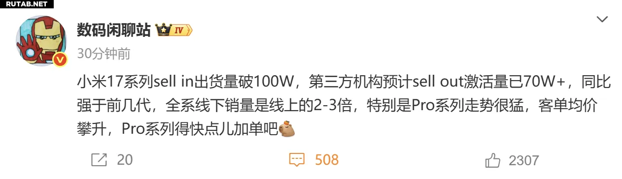 Партнер компании Xiaomi Лу Вейбинг подтвердил, что продажи серии смартфонов Xiaomi 17 превысили 1 миллион единиц.