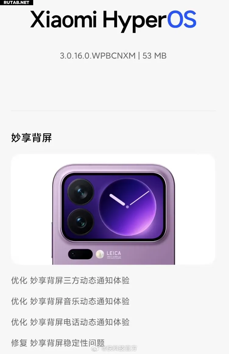 Основное внимание в этом обновлении уделено оптимизации работы функции «Умный задний экран» (Mi Smart Back Screen), а также устранению проблем с камерой и общей стабильностью системы для улучшения пользовательского опыта на этом флагманском устройстве.