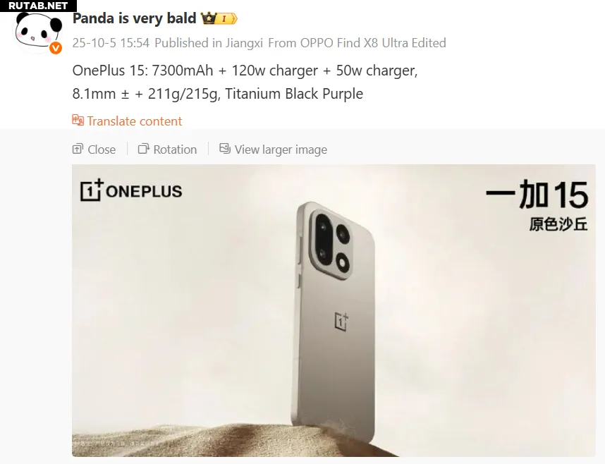 В комментариях к публикации в Weibo инсайдер также уточнил, что OnePlus 15 получит дисплей диагональю 6,78 дюйма, что немного меньше 6,82-дюймового экрана OnePlus 13. Толщина устройства составит 8,1 мм, а вес — от 211 до 215 грамм в зависимости от цветового варианта. Смартфон будет доступен в цветах «Титан» (Песчаная буря), «Черный» и «Фиолетовый».