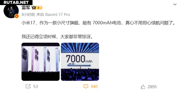Согласно имеющейся информации, батарея емкостью 7000 мАч в Xiaomi 17 впервые для устройств такого размера превысила отметку в 7000 мАч.