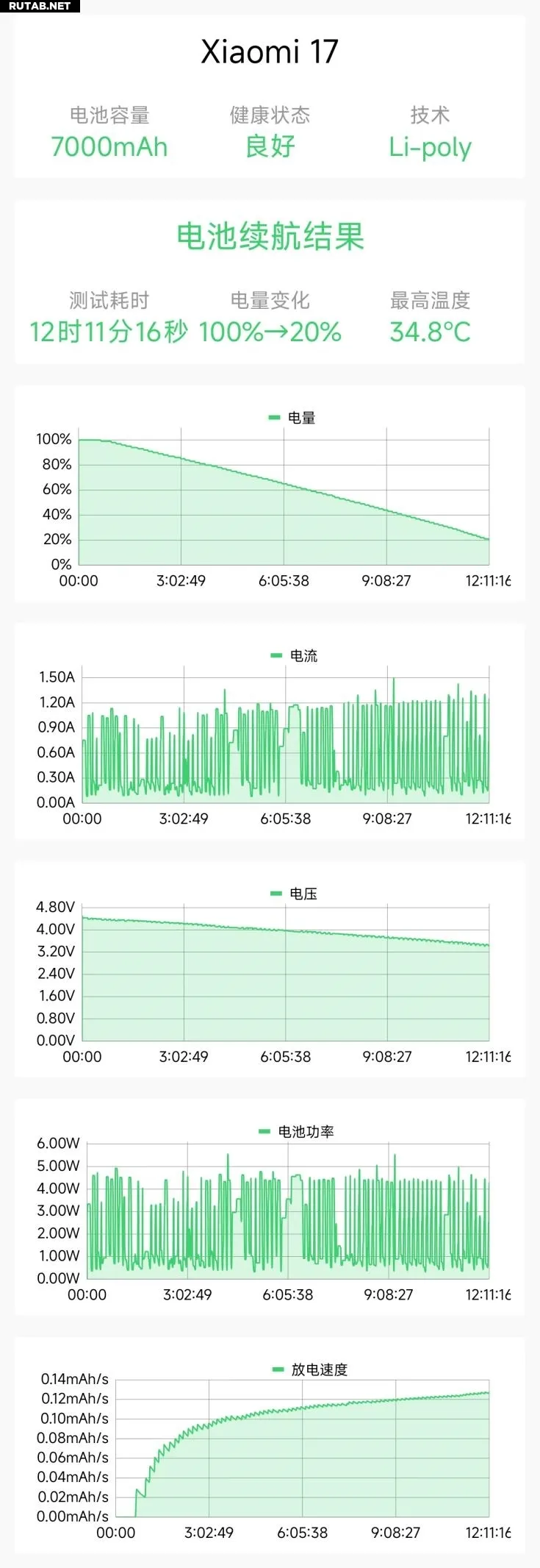Результаты теста показали, что при разряде от 100% до 20% аккумулятор Xiaomi 17 продержался 12 часов 11 минут, а теоретический расчет показывает возможность работы до 15 часов 13 минут, что делает его моделью с самой длительной автономностью в линейке Xiaomi 17.
