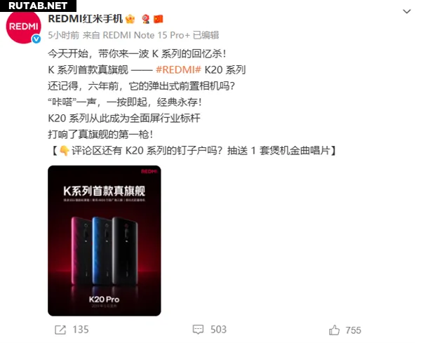 Официальный аккаунт Redmi в Weibo начал предварительный анонс устройства, объявив о серии публикаций, посвященных истории линейки K.