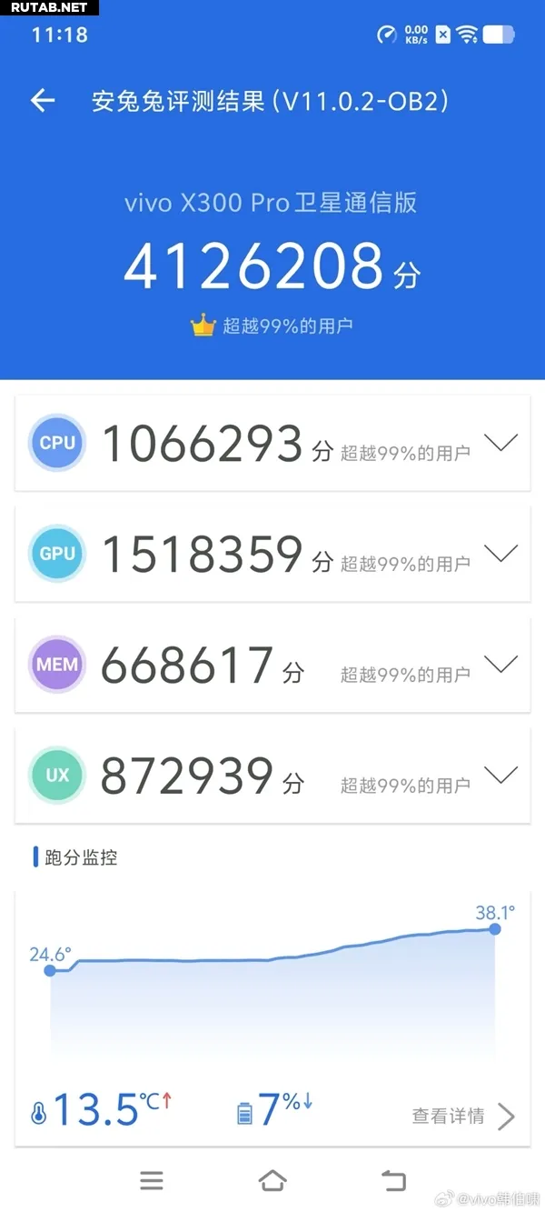 Менеджер по продукции vivo Хань Боссяо ранее опубликовал результаты тестирования vivo X300 Pro, который набрал более 4,12 миллиона баллов в бенчмарке.