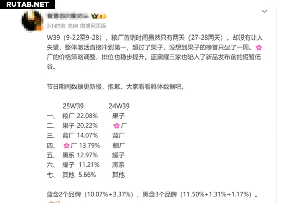 Рейтинг долей рынка мобильных телефонов Китая за 39-ю неделю 2025 года:
