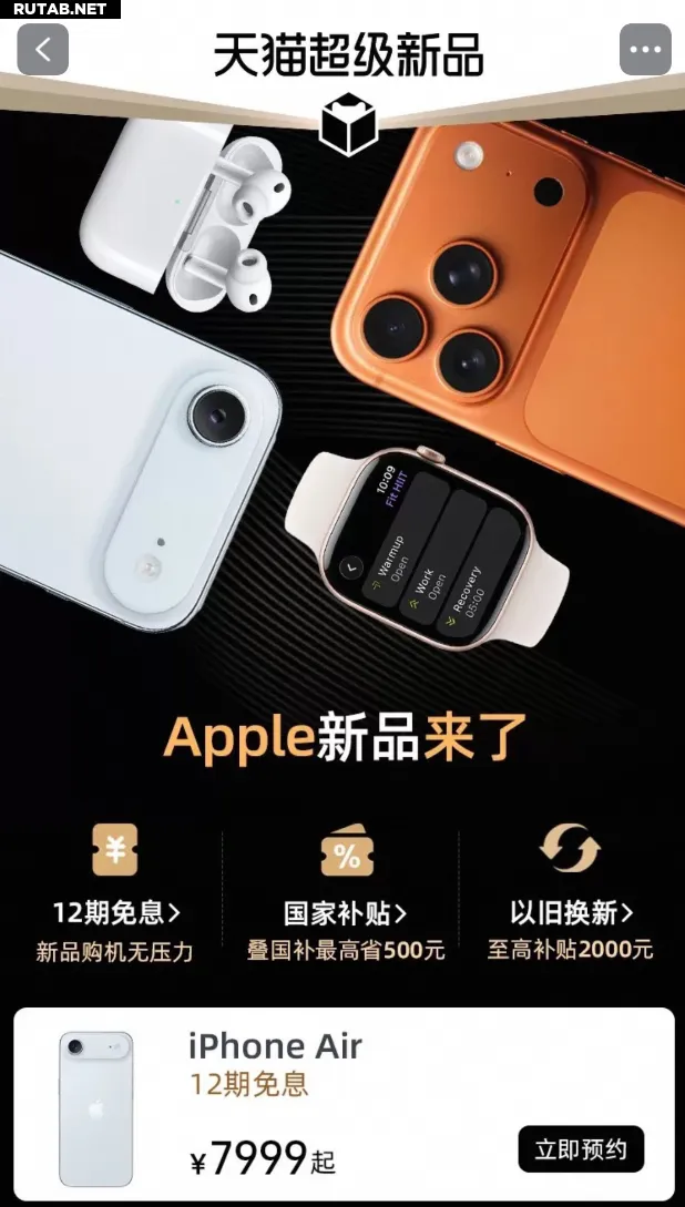 Официальный флагманский магазин Apple в Tmall уже открыл предварительную регистрацию на iPhone Air для китайского рынка. Для участия нужно открыть приложение Taobao на телефоне и найти «iPhone Air» — предзаказ начнётся 17 октября.