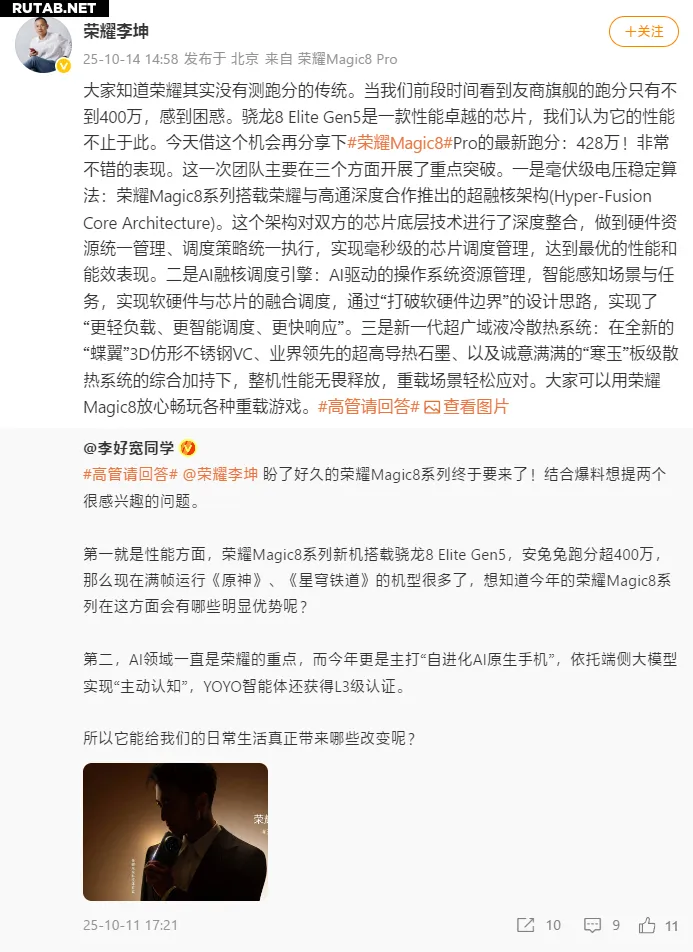 Сегодня менеджер по мобильным продуктам Honor Ли Кунь опубликовал данные тестирования Honor Magic8 Pro, которые в очередной раз побили отраслевой рекорд - 4,28 миллиона баллов.