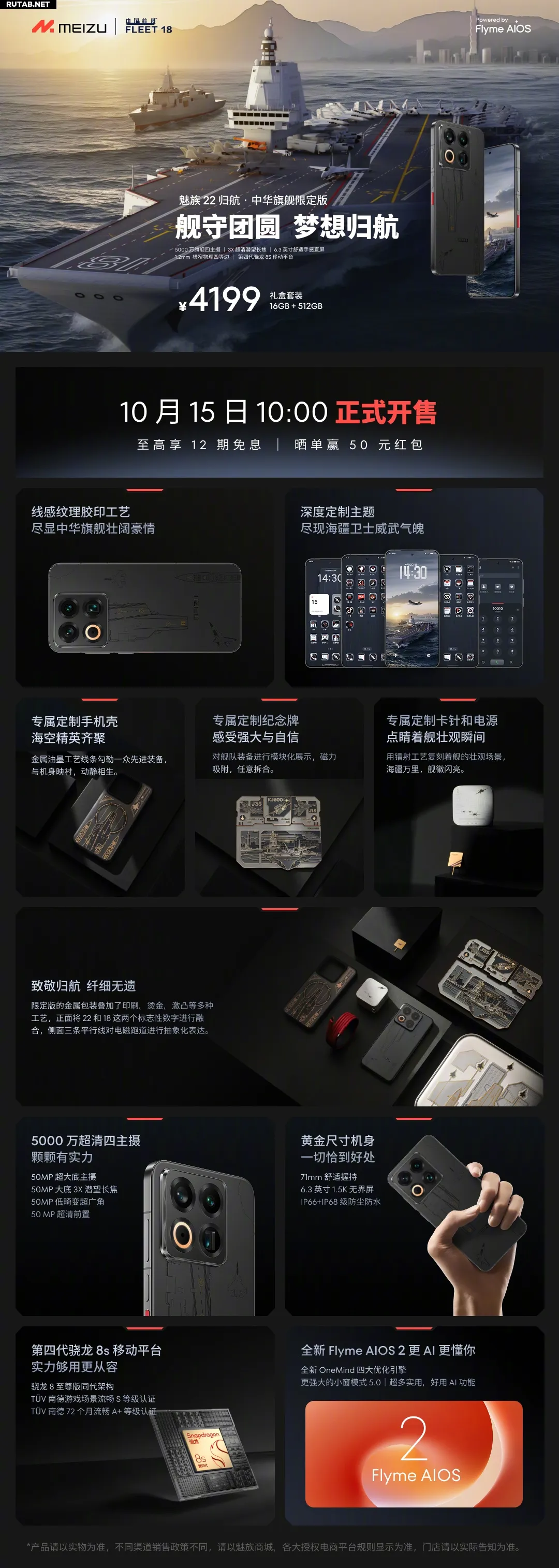 Компания Meizu официально объявила о старте продаж лимитированной версии флагманского смартфона Meizu 22 Return to China Flagship Limited Edition. Новинка поступит в продажу 15 октября в 10:00 по пекинскому времени (05:00 мск). Комплект с памятью 16 ГБ + 512 ГБ будет стоить 4199 юаней.