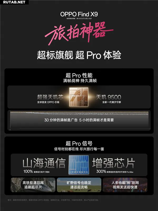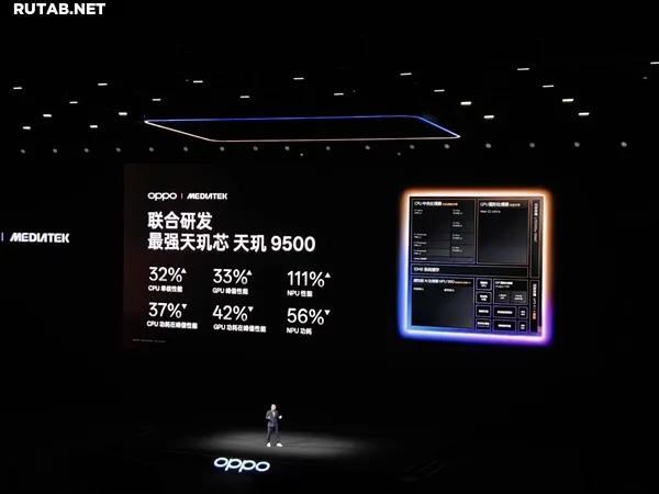 Чип Dimensity 9500 был разработан совместно OPPO и MediaTek и позиционируется как самый мощный мобильный процессор компании. Он оснащен новым поколением технологии «Приливный движок» (潮汐引擎), которая обеспечивает более агрессивное использование производительности.
